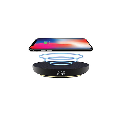 This wireless charger comes with a digita clock with a sharp white display. Its compact size allows you to fit it into the tiniest corner and the wireless charger makes charging your smartphone very convenient. The backlit base adds to the elegant look of the product.