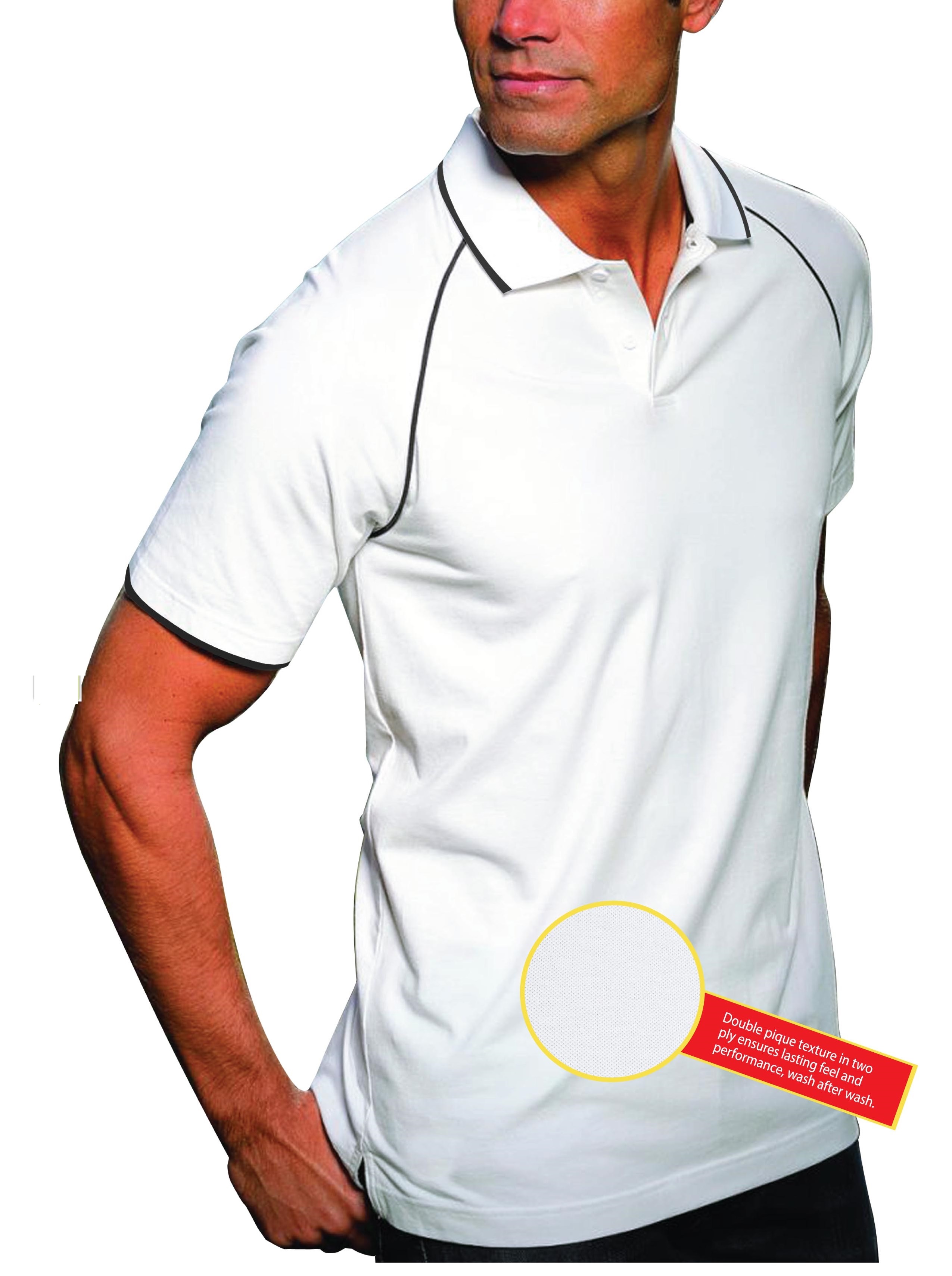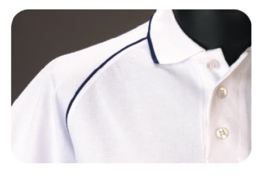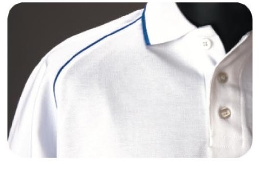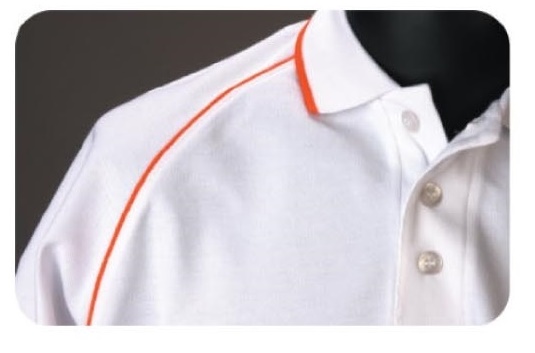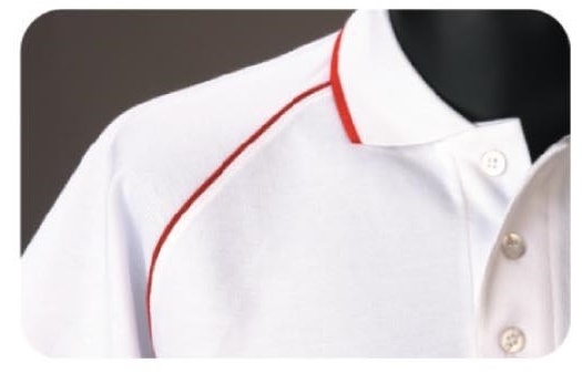 Collar/cuff has contrast tipping and Sleeves has contrast piping