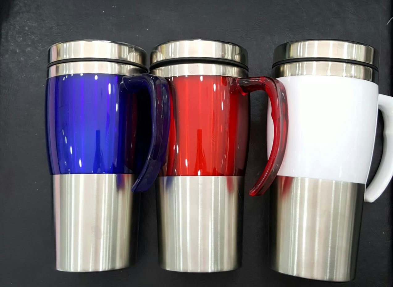 A double wall stainless steel thermal mug