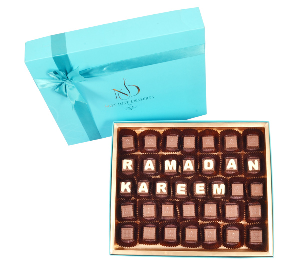 This Ramadan & Eid, gift you loved ones a box of 35 premium chocolates with a personalised text of your choice